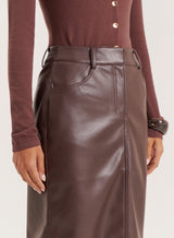 Designed to bring everyday impact to your wardrobe, reach for the Carys skirt all season. In a chocolate brown faux leather fabric, the Carys skirt sees our signature maxi silhouette reimagined in a new texture. With seam detailing, front pockets and a mid-rise waistband, it's perfect for styling with ease. Pair with a chocolate long sleeve top and accessories for a stylish colour-drench look.