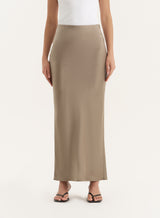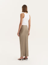 Olive Satin Maxi Skirt- Novah