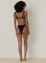Designed with practicality in mind, our Monaco bikini top employs an underwire for support and a flattering look. Enhanced with delicate ruching detail and a elegant flower accent, this top adds a touch of feminine allure to your beach ensemble.