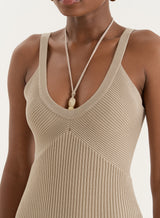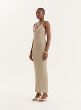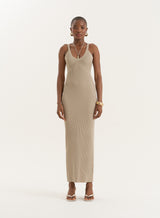 Embrace the simplicity of summer dressing with the Dion maxi dress. In a fitted silhouette, it's the ultimate versatile piece with a soft beige hue, scooped neckline and strappy finish. Style it up with heels and beaded jewellery for the perfect day to night transition.
