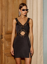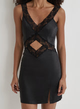 An eye-catching party piece, the Milah dress comes cut to a sexy mini length silhouette in a timeless all black satin. Featuring a feminine lace neckline and sultry cut out bust it is equally as glamourous. Add heels to finish.
