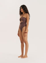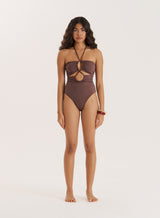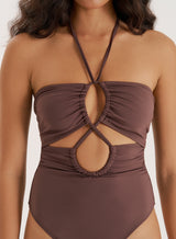 In a rich summer colourway we can't get enough of, the Echo chocolate brown swimsuit instantly elevates your swim collection. In a striking cut out design, it features a halter neck fastening and ruched detailing for a flattering fit. A high leg silhouette that elongates your figure, it's the ultimate swimsuit to see you through the season.