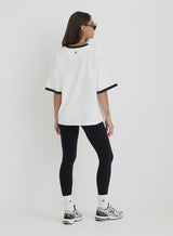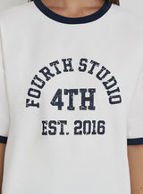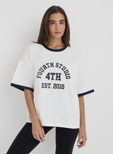 Add a sporty feel to all your off duty looks with the Finn slogan t-shirt. Designed to an oversized shape, it embraces the varsity trend with contrast neck detailing and Fourth Studio logo print. Wear with everything from black slip skirts to wide leg denim.