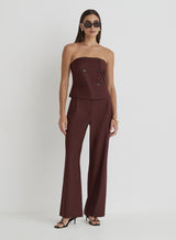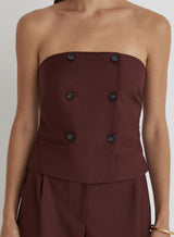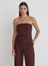 Boasting an autumnal brown hue, the Crea strapless corset will elevate your AW wardrobe. Featuring a double-breasted button up design that creates a figure-hugging shape, layer with the matching Crea blazer and trousers for a 3-piece tailored look.
