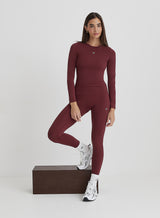 Invest in a multi-functional everyday with our Abby legging. A seamless high waisted design in a rich burgundy shade,, adopt it into your staple wardrobe edit. Featuring a seamless design and 4th branding, simply pair with the matching Anni top for an elevated yet simple fit.