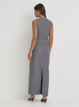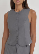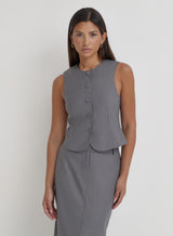 In a muted charcoal grey hue, the Hallie waistcoat elevates everyday tailoring. A figure-skimming silhouette, this style boasts a sleeveless design with bust darts and a button front fastening. Pair with the matching Hallie skirt for the ultimate compliment.