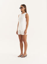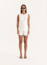 Crafted from a soft, breathable cotton, the Briella waistcoat is the versatile summer piece you've been looking for. In a fresh white hue, it features a button-up design with a pointed hem and straight neckline. With tailored seam details for a perfect fit, simply layer with the Rayna tailored shorts for a refined summer look.