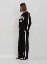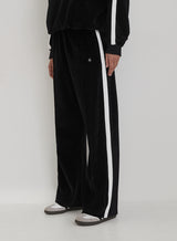 The Cacie Jogger in luxurious black velour combines comfort and style effortlessly. Designed with a sleek straight leg and a flattering fit, these joggers offer a laid-back look without sacrificing style. The bold white side stripe and signature 4th branding elevate the classic design, giving it a sporty yet chic vibe. Featuring practical side pockets for convenience, these joggers are perfect for both lounging and on-the-go moments. Pair with the matching top for a coordinated, high-fashion set that’s as comfortable as it is stylish. The Cacie Jogger is your new go-to for a relaxed, elevated look.