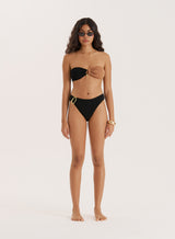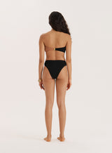 A versatile swim piece, the Cecelia black bikini bottom combines timeless design with a 4th & Reckless edge. Crafted from a crinkle swim fabric to a high leg silhouette, it features gold ring hardware detailing at the hips for a luxe Ibiza-ready feel. Wear with the matching bikini top for a dreamy poolside look.