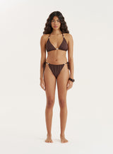 In a trending chocolate hue, the Jaya bikini bottoms feature a string, tie up design that can be adjusted for the perfect fit. Elevating your swim collection with a rich chocolate colour palette and pearl accents, wear with the matching Jaya bikini top for an easy poolside look.
