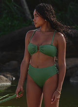 Green Crinkle High Waist Bikini Bottom- Lulu