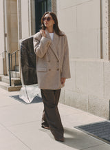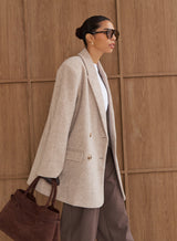A statement layering piece for the new season, the oatmeal Floriana blazer takes on classic detailing with a double breasted button fastening, front pockets and structured lapels. Made from a heavyweight tailored fabric, it comes in a super oversized fit for a bold layering look.