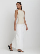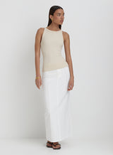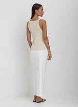 Invest in your staple wardrobe with our Rhea vest. In a racer back silhouette, this style features a grey jersey rib, finsihed with exaggerated trims, subtle 4th embroidery and a flattering dipped hem. For the ultimate summer outfit, pair with our Mirissa shorts.