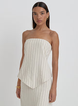Our Alai top is a seasonal must-have. Carefully curated from a lightweight linen fabric, this longline design boasts a bandeau neckline, with a pointed hem finish. In a subtle pinstripe, this style is a neutral dream. Pair with the matching Alai skirt.