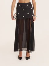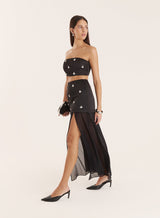 When the night calls for something special, the Nobu skirt offers endless impact. This A-line silhouette falls at midaxi length, with a mesh underlay hem and front slit for drama. Finished with luxe embellished details, it's a timeless night-out piece to style with the matching Nobu top and your favourite clutch bag.