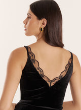 For after-hours moments, the Lilou velvet dress blends timeless detail with an elevated party feel. Falling to a midaxi length in a straight silhouette, it's intricately detailed with lace trims, tie detail v-neckline and a subtle low back. Wear with strappy low heels and metallic jewellery.