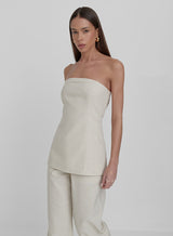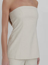 Carefully curated from a soft linen-like fabric, the cream Liana corset is a timeless piece that boasts a bandeau neckline and shaping details. Pair with the Liana trousers for the full co-ord.