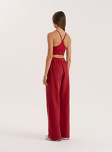A modern uniform thoughtfully designed; the Fergie joggers have been contemporised with a wide leg for a sleeker look. A key wardrobe item boasting a deep red hue and 4th branding contrasts for an elevated finish. Made from soft cotton with an adjustable waistband, they're a go-to piece for comfort and standout style. Pair with an oversized tee and trainers for a relaxed fit.