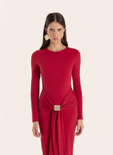 For quiet glam this party season, reach for the Mel maxi dress. Crafted in a soft stretchy jersey, it's a flattering yet comfortable fit. A timeless bodycon design, it's elevated with a wrap-around fabric at the waist and gold hardware detail. Keep accessories minimal for an effortless evening look.