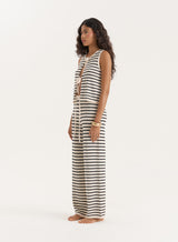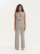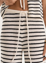 The Bria trousers are the utlimate summer staple. In a cream and black stripe, this lightweight knit design see's a relaxed silhouette finished with wide legs and a tie waist fastening. Perfect for versatile styling, complete the look with an oversized t-shirt or pair with the Bria top for the full outfit.