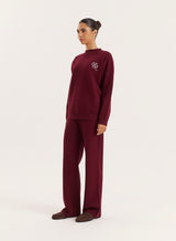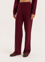 Inspired by effortless dressing, the Lauren trousers are featured in an autumnal burgundy colourway for everyday styling. With an elasticated waist and straight leg cut, they offer maximum comfort with no compromise on style. Pair with the matching Lauren jumper for a cosy daywear look.