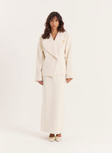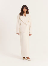 Step into refined sophistication with the Shelley Skirt, a luxurious wool skirt that combines classic design with modern ease. In a soft, neutral cream hue, this maxi-length piece drapes beautifully, creating a flattering, fluid silhouette. The mid-rise waist ensures a comfortable, secure fit, while side pockets add a functional, stylish touch. Whether dressing up or down, the Shelley Skirt is your go-to for effortless, elevated style.