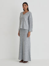 A knitted skirt is the go-to staple of the season. Enter our Cadence maxi skirt - crafted from a fluffy, soft knit, it offers a super comfortable fit whilst keeping your look trend-led and timeless. Wear with the matching fluffy knit jumper and slip on your heeled boots.