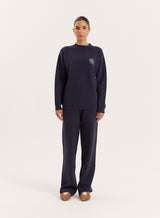 A staple addition to your knitwear collection, meet the Lauren jumper in classic navy. Blending elements of comfort and style, it's designed with a crew neckline, long sleeves and a branded embroidery finish. Complete the look with the matching Lauren trousers and chocolate brown accessories.