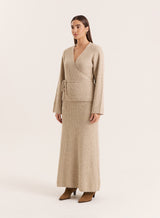 In a soft ribbed knit, the Adriena top elevates your knitwear collection thanks to a flattering wrap around design and v-neckline shape. Cinching you in at the waist with the adjustable tie, it features long sleeves and ribbed trims for a warm yet elevated look. Wear with the matching skirt or your everyday jeans.