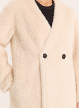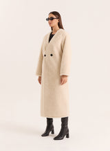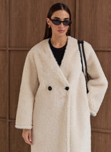 A clean yet cosy update to your winter coat collection, the Bobby oversized teddy coat comes in a soft boucle fabric in a fresh cream hue. Falling to a maxi length, it features long sleeves and a sleek collarless finish. Fastening with two contrast buttons with practical slip pockets, it's the perfect warm layer for all your winter looks.