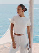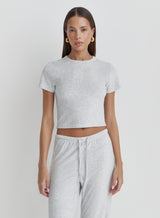 For an everyday lounge basic, our Sabina tee features a soft grey marl design, a fitted silhouette and jersey fabric. Pair with the Sabine trouser for an effortless off-duty look.