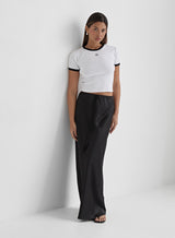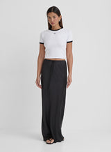 For an everyday staple, the Liv baby tee is the perfect wardrobe piece. In a soft jersey rib, this style boasts a timeless white hue and features black contrasting tipping and fourth embroidery. Style with a staple pair of jeans and you’re good to go.