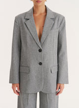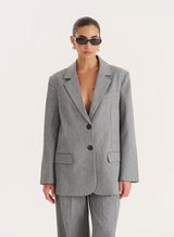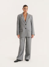 In a structured, oversized shape, the Mira blazer is the versatile piece you need for autumn and beyond. A flattering boxy fit, it features a single-breasted design, contrast buttons, structured lapels and front pockets. In a durable, tailored fabric in a neutral grey hue, wear with everything from your fave denim to our matching Mira trousers depending on your plans.