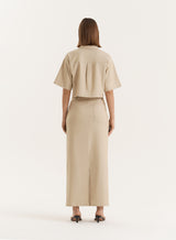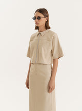 Nothing else will liven up your spring wardrobe quite like the Miley shirt. In a boxy, cropped design, the beige tailored shirt features a zip-up fastening and chest pockets to create a fresh, utility feel. Designed with a structured collar and short sleeves, it's a versatile piece you can wear with denim or layer with the co-ordinating Miley skirt for the 4th & Reckless timeless appeal you love.