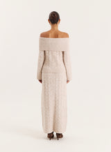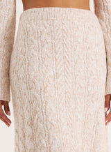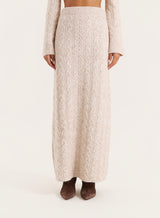 Perfect for taking you from the office to your evening plans, reach for the Dalia knitted skirt in camel brown. Cut to a maxi length, it's crafted from an ultra-soft cable knit fabric and finished with an elasticated waistband. For a practical look that's endlessly chic, pair with the Dalia knitted top and heeled boots.