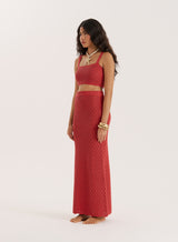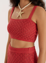 A timeless design you can reimagine each summer, the Sierra crop top is crafted from an intricate crochet knit with a chili-inspired red hue. Designed with delicately thin straps, perfect for warmer weather, it features a flattering straight neckline and fitted finish. Wear with the matching Sierra skirt or mix and match with summer wide leg trousers.
