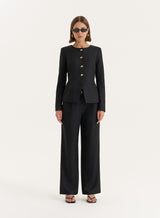 Elevate your everyday look with the Polly Trouser, the perfect balance of sleek tailoring and modern edge. Crafted with a straight-leg fit and low-rise design, these trousers offer a flattering silhouette with a relaxed yet refined feel. The gold hardware adds a touch of luxury, while the practical belt loops, zip, and button fastening ensure a secure fit. With side pockets for convenience, these trousers seamlessly combine function and fashion.