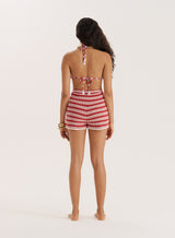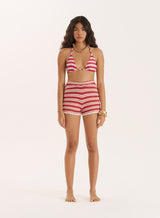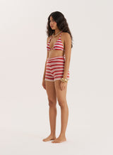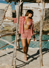 Taking you from poolside to beach club, the Antonia knitted shorts are the multi-functional piece to pack in your suitcase. Crafted from an intricate knit, they provide a super comfort fit with a relaxed shape and elasticated waistband. In a nautical red and white stripe, wear with the matching beach shirt for an effortless holiday co-ord.