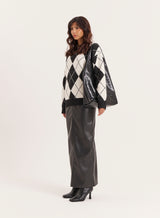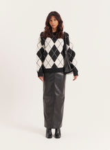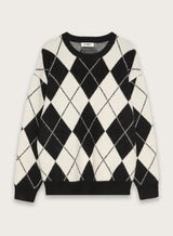 Black And Cream Knitted Argyle Crew Neck Jumper