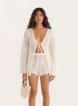 Upgrade your summer essentials with the crochet Antoine short. Micro in silhouette, this style sits low rise featuring a tie waistband and relaxed silhouette. Finish the outfit with the matching Antoine shirt.