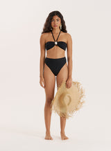 From our 'La Musa' collection, the Aina bikini bottoms are everything you need for a swimwear update. Made from a stretchy swim fabric, they're designed to a high waist, high leg design for a truly flattering fit. Coming in a plain black, they're easily interchanged with all your bikini tops - pair with the matching Aina bikini top for a classic poolside look.