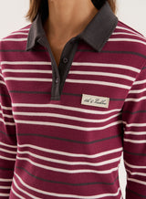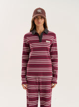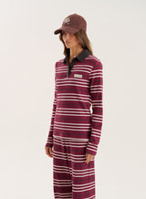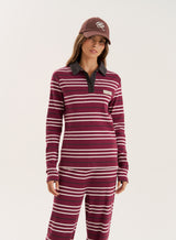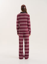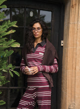 Burgundy Striped Fine Ribbed Jersey Longsleeve Top- Liliana