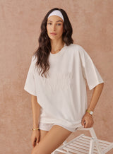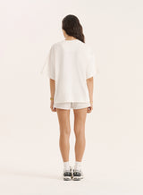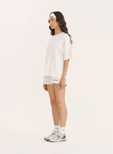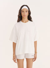 In our classic relaxed shape, the Daphne t-shirt is a versatile update to your athleisure wardrobe. Made from a soft cotton, it falls to an oversized fit with dropped shoulders, short sleeves and a crew neckline. In a white hue that pairs well with leggings and joggers, it's finished with 'Fourth Studio' script writing across the chest.