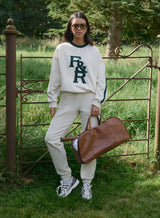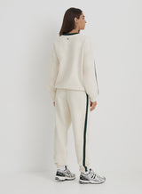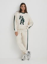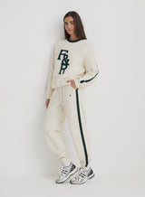 A core lounge favourite, the Sloane jogger sees 4th’s signature off duty style complimented by a wearable soft-cream colourway. With applique branding and green contrast side seam for a country club aesthetic, this style is easy going yet elevated style combine with the Sloane sweatshirt.