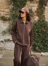 Chocolate Logo Detail Zip Bomber Jacket- Valerie