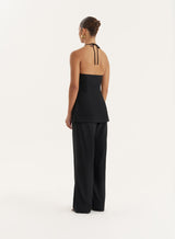 Black Linen Blend Straight Leg Trouser- Daisy