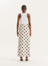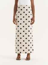 Polka Dot Printed Linen Blend Maxi Skirt- Clementine