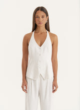 A refreshing update to your tailoring collection, the Sabrina waistcoat features modern, elevated details to take you from day-to-night with ease. In a halter neck design with contrast button-up fastening, this waistcoat is made from a lightweight, viscose-blend fabric in a trending stripe print. With a notched hem finish that creates a tailored feel, we're pairing this with the matching Sabrina trousers for a head-to-toe look.