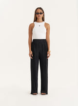 Elevate your wardrobe. Crafted from a flattering plisse our Olivia trousers are the go-to choice for balance between comfort and style. Updated in a timeless black, the flowing and comfortable fit ensures ease of movement. Simply add the Olivia top.