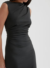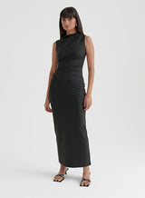 Black Ruched Jersey Midaxi Dress - Tamilda
